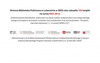 ( powyższy link dotyczy dofinansowania nowości wydawniczych w 2022 Gminna Biblioteka Publiczna w Lubominie)