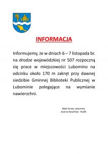INFORMACJA – prace polegające na wymianie nawierzchni Anna Szerszeń2025-11-05T08:05:15+01:005 listopada, 2025|Aktualności|