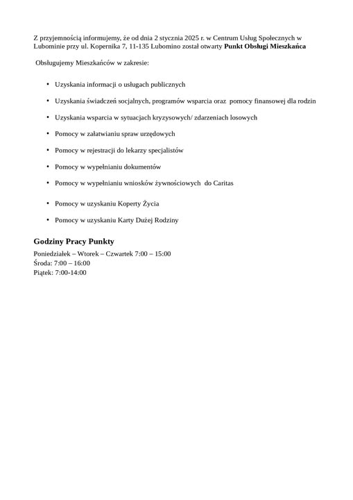 Zgłoszenia i uwagi dotyczące zimowego utrzymania dróg gminnych na terenie gminy Lubomino należy kierować pod nr tel. 695 938 650 Wójt [...]