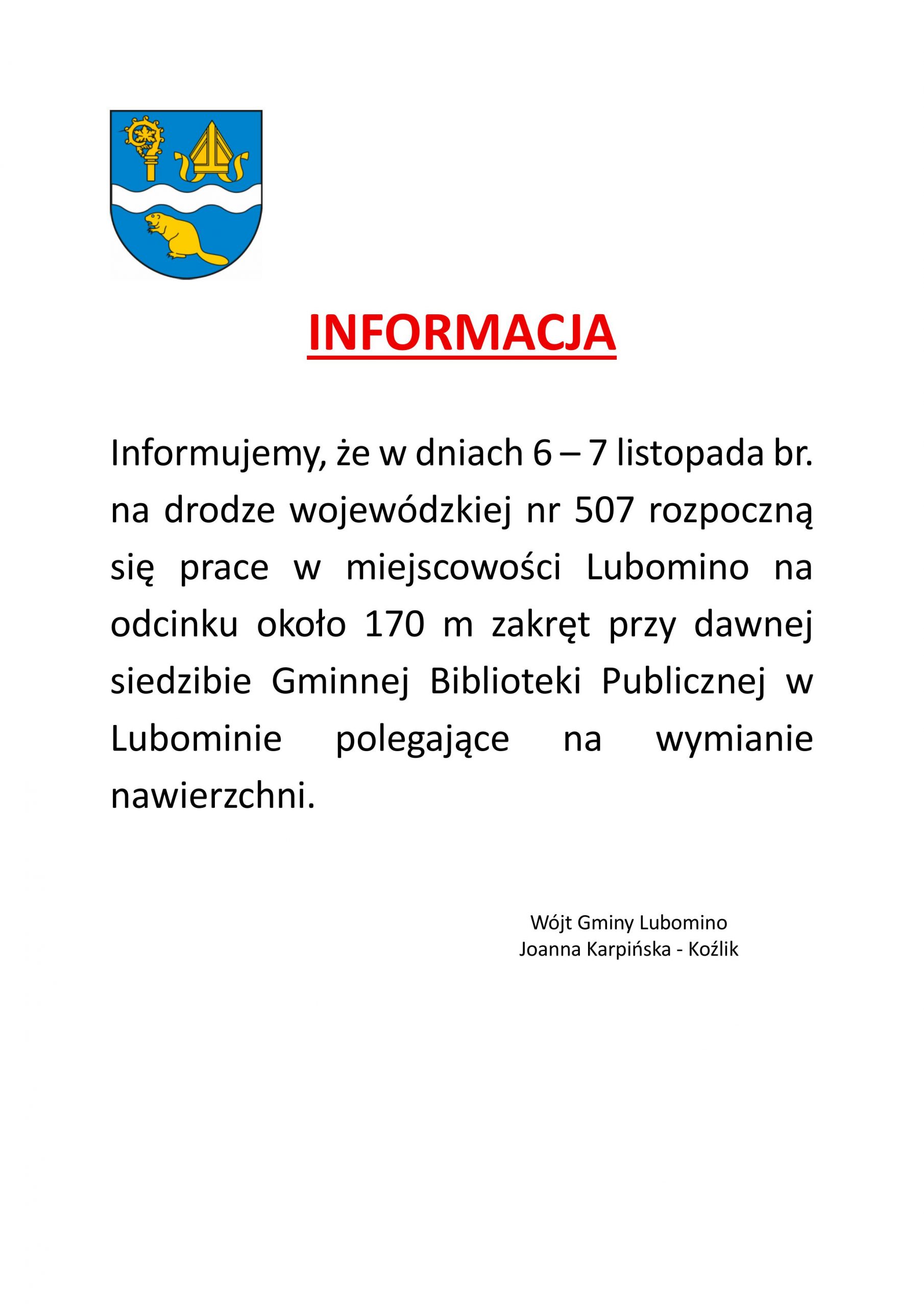 INFORMACJA – prace polegające na wymianie nawierzchni